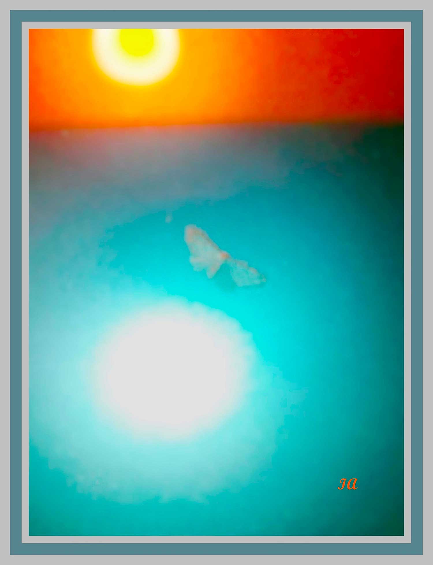 Mariposilla de la suerte inmersa en un ambiente de reflejo de luna y destello de sol.